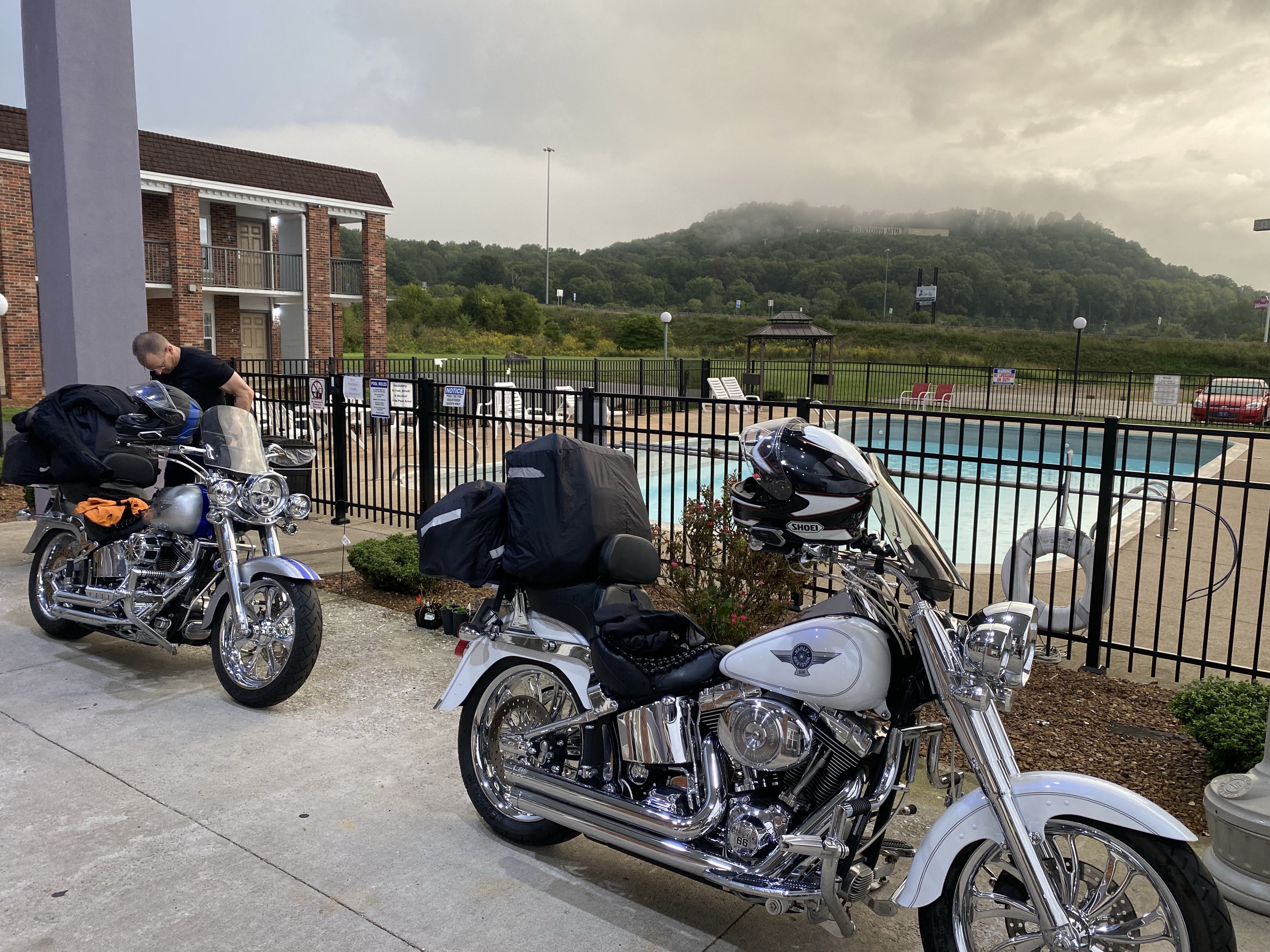 Started in the rain in Cave City, Kentucky. Went through Lexington crossed the Ohio river into Ohio and on to WPAB outside Dayton where Matt lived as a kid. Around Cincinnati and Toledo and onto Monroe, Michigan for the night. Bates and I had a first.. decided a motel was to “iffy”and decided to leave and spend a little more on a Hampton Inn. Off for Traverse City and the upper peninsula of Michigan