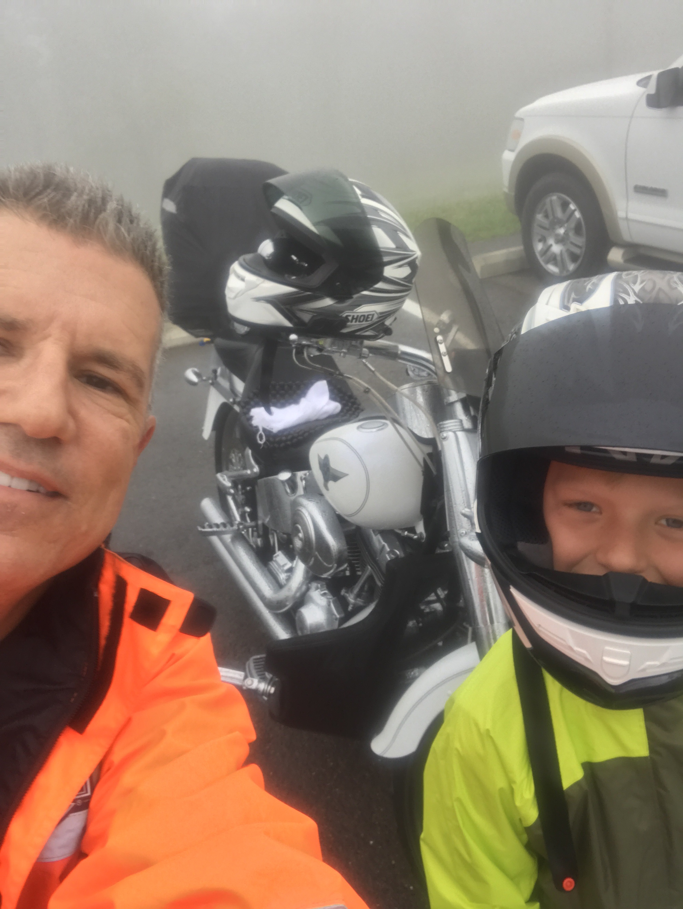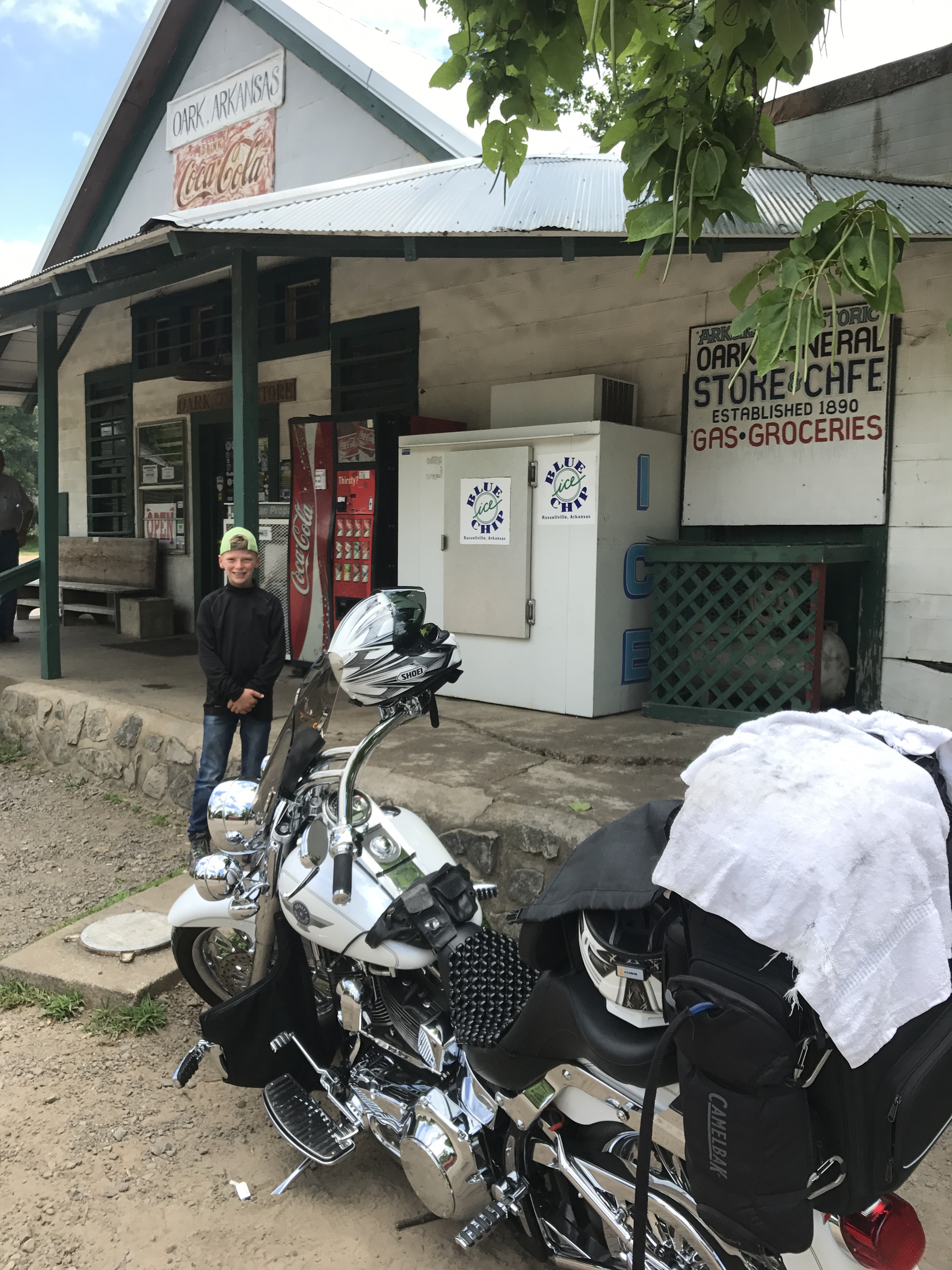 Well, we woke up on top of the Talimena Byway in the clouds! We suited up for our drive down the mountain. By the time we got to Mena, dry and partly cloudy. The rest of the day was the same and the riding was great. We rode the Pig Trail senic byway to lunch at the famous Oark Cafe. We rode AR 123 “Arkansas Tail of the Dragon” ended up at Jasper where we played in the little Buffalo river before eating at the Ozark Cafe. 227 miles of fun.