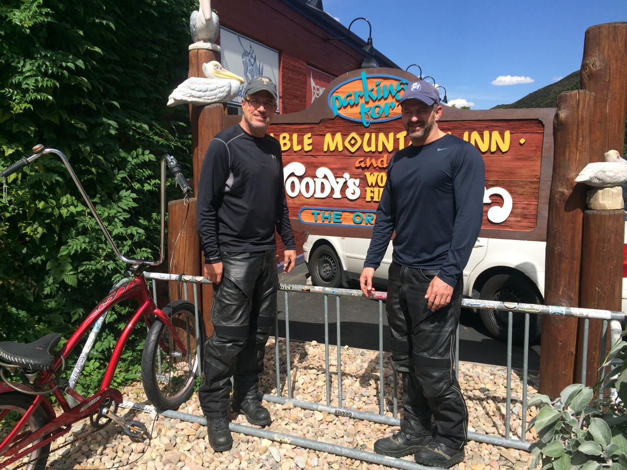 Great lunch with Bryan and Leah. They shared a few stories that may explain our having to use emergency gas on the Alaska Highway. On day one, and another time we cut it real close. Seems Bates’ “dangerous” side is seeing how long he can go without filling up once the “low fuel” light comes on! He is such a rebel! Thank’s for the info Leah, It will help on future rides!